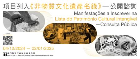 【本報訊】為進一步加強對澳門非物質文化遺產的保護,文化局今日(124日)起至202512日期間,對新一批合共12個清單項目建議列入《非物質文化遺產名錄》進行為期30日的公開諮詢,以廣泛聽取市民意見。