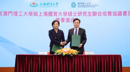 上海體育大學是國家“雙一流”及上海市高水平建設高校,澳門理工大學與該校多年來保持堅實的學術合作,是次簽署聯合培養研究生協議,將實現優質教育資源和學科優勢互補互助,雙方利用相關應用技術產學研條件協同發展,有效提升大健康的科創教研水平。有關聯合培養碩士學位課程將於2025/2026學年開課,學生有機會於兩校學習,滿足兩校要求的學生將獲澳門理工大學頒發碩士學位證書及上海體育大學簽發聯合培養碩士研究生學習證明,為澳門有志進修研究生課程的運動員及專業人士提供多元化升學選擇。