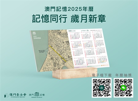 市民即日起透過關注 “澳門記憶”微信號,並按照本會微信宣傳帖文 “加微信 有驚喜” 之內容參與活動(https://bit.ly/4gmmrdh),經抽籤即有機會獲得 “澳門記憶” 2025年枱曆,名額150份,歡迎大眾踴躍參與。活動詳情可留意 “澳門記憶” 微信訂閱號及社交平台宣傳。