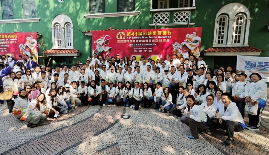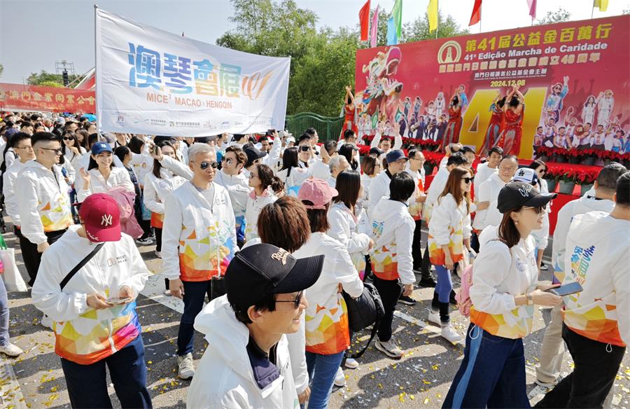 【本報訊】由澳門日報讀者公益基金會舉辦的百萬行活動,於今日順利舉辦。澳門特別行政區招商投資促進局、橫琴深合區經濟發展局、澳門會議展覽業協會、澳門展貿協會、澳門廣告商會、澳門會展產業聯合商會、澳門會展旅遊業協會及橫琴會議展覽業協會共八個單位組織成“澳琴會展隊伍”,以170人的強大陣容,首次攜手亮相百萬行,格外引人注目。“澳琴會展隊伍”身穿統一的服裝,以“澳琴會展 齊步向前”為口號,共同為澳門的社會公益事業貢獻力量。
