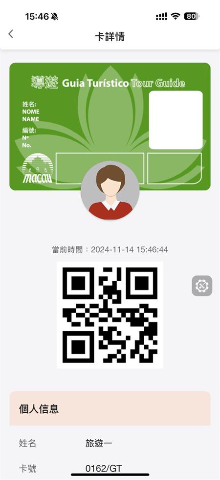 旅遊局於今年(2024年)1月1日推出“一戶通”辦理導遊工作證相關服務,導遊工作證持有人或新申請者可透過“一戶通”進行工作證的申請、續期、補領、更改居住地址、更改聯絡電話/電郵,以及更新語言種類等操作;旅遊局與澳門旅遊大學更在今年10月建立數據互聯機制,申請者透過“一戶通”辦理導遊工作證相關服務,可免除遞交導遊證書等文件,實現申請過程全程電子化,辦理申請服務“跑零次”。