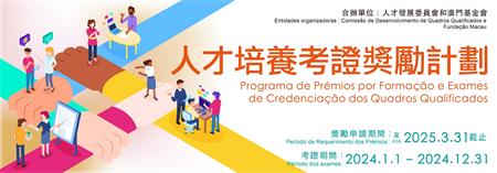 【本報訊】由人才發展委員會及澳門基金會合辦的“人才培養考證激勵計劃”(下稱“計劃”)於本年度繼續推行,申請期為即日起至2025年3月31日,獎勵合資格申請人於2024年1月1日至12月31日期間獲發的證照。獎勵目錄包括:外語能力測試、行業導向認證考試、“現代金融人才專業認證”及“資訊技術人才專業認證”,申請獲批後將可獲得相應獎勵。