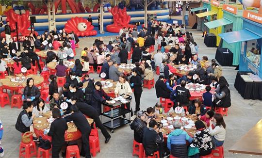 適逢歲末,又正值澳門雙慶之年及美高梅17周年誌慶,為答謝社會大眾對片區的支持,美高梅同日特設“三慶禮遇街坊盆菜宴”,邀請了合作夥伴,以及來自本澳不同社團逾400名賓客進區,共享精美盆菜。當中更聯乘媽閣塘片區“大鐵棚食堂”的八大本地餐飲商戶,為大家提供特色食物“八小碟”,一同“做冬”寓意喜迎來年安康。
