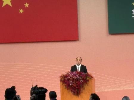 行政長官強調,偉大祖國是澳門繁榮穩定發展的最堅強後盾。國家一直把澳門作為掌上明珠,始終關心澳門同胞福祉,持續出台系列惠澳政策措施,不斷為澳門發展提供新機遇、新空間、新動力。澳門作為祖國大家庭一分子,必須在新時代新征程展現新擔當新作為,充分發揮特殊地位功能和獨特優勢,在融入國家發展大局中實現自身更好發展,為強國建設、民族復興偉業作出更大貢獻。他堅信,在習主席親切關懷和中央政府的大力支持下,第六任行政長官岑浩輝先生必將帶領新一屆政府和社會各界,譜寫出具有澳門特色的“一國兩制”實踐的新篇章。