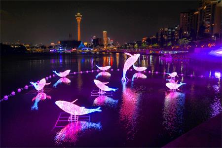 ․“星光鯨躍”:在南灣湖中躍動嬉戲的星光“鯨魚”,增添迷人光影之美。