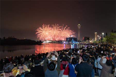 這次推介6個最佳觀賞點並設有音響設備播放煙花背景音樂,讓現場觀眾享受煙花與音樂交織的視聽體驗。為時約15分鐘的煙花表演在夜空中綻放一幕幕動人畫面,現場觀賞煙花的居民和旅客舉起手機拍下煙花精彩瞬間,記錄歡慶時刻,留住遊歷澳門的美好時光。