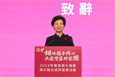 二是以習近平主席關於大灣區發展的重要論述為指引,在建設美好家園中更好展現灣區婦女風采。推進粵港澳大灣區建設,是習主席親自謀劃、親自部署、親自推動的重大國家戰略。希望灣區姐妹們積極回應習主席號召,充分利用灣區文化同源、人緣相親、民俗相近等有利條件,主動參與大灣區各項建設,紮實推進基礎設施“硬聯通”、規則機制“軟聯通”、廣大居民“心聯通”,發揮女性科技人才力量,用好女性科技創新平台,以改革創新精神,積極推動新質生產力發展,不斷增添高質量發展新動能。