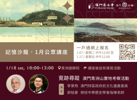 踏入2025年,“澳門記憶”將繼續策劃組織涵蓋多元主題的“記憶沙龍”,從不同視角細味澳門文化故事,啟發公眾對本土歷史和文化遺產的欣賞和珍視。首場講座由澳門特區政府前文化遺產委員李業飛及勞校中學歷史學會指導老師郭桂豪主講,以“覔跡尋蹤——澳門青洲山實地考察活動”為題,分享他們多年搜集青洲山史料和考察研究的精彩內容。講座將於118日上午十時在青洲避靜院舉行,講座後設有導賞活動,參加者請穿着適合活動衣物,自備飲用水及防蚊用品。