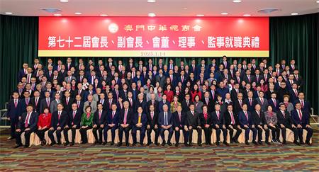 【本報訊】澳門中華總商會於一月八日舉行了第八十三次會員大會,會上選出了第七十二屆會長、副會長、會董和理事、監事,崔世昌獲選為會長。昨(十四)日下午,該會第七十二屆理事會、監事會分別舉行了第一次會議進行互選,馬志毅及中國工商銀行(澳門)股份有限公司(高明)獲選為理事長及監事長,隨即就職視事。晚上,該會會長崔世昌在會址設晚宴款待各位副會長、會董、理事、監事同人。全國政協副主席、中總永遠會長何厚鏵;中總永遠會長馬有禮、永遠榮譽會長許世元等應邀出席,並與新一屆中總會務負責人在會址馬萬祺先生紀念堂合照留念及晚宴。