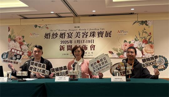 藝嘉國際有限公司執行董事何嘉靜、會展銷售總監黃宇平、活動執行經理吳康澤出席今(16)日下午在漁人碼頭會議展覽中心舉行的新聞發佈會,並介紹活動詳情。