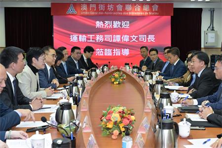 【本報訊】運輸工務司司長譚偉文一行今(16)日拜訪澳門街坊會聯合總會並舉行座談會,聽取該會對運輸工務範疇本年度施政工作的意見和建議。
