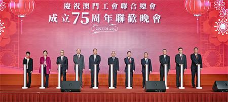 【本報訊】行政長官岑浩輝今(20)日出席慶祝澳門工會聯合總會成立75周年聯歡晚會。他致辭時表示,回歸25年來,澳門取得了舉世矚目的發展成就,這離不開廣大勞動者的辛勤付出與奮進拼搏。特區政府定當崇尚勞動、敬重勞動者、關愛勞動者,着力發揮澳門廣大職工在特區建設中的重要作用,更大作為推動經濟適度多元發展,打造“幸福澳門”。
