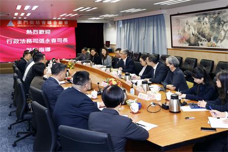 會長吳小麗代表街總歡迎張永春一行到訪並聽取施政建議。她表示,市政工作繁重,攸關居民的生活素質,街總非常關注特區政府一連串的大型市政工程,並期望市政工作不斷得到優化,滿足社會的需求,確保本澳民生改善。她亦表示,未來應進一步增加立法工作的資源投放並提升效率,加快立法和修法的進度,促使本澳的法律制度與時俱進,緊貼實況,以回應社會持續發展對法律的需求。