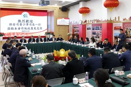 會長劉雅煌首先歡迎黃少澤一行到訪並聽取該會意見。他表示,僑界深深感受到任何社會動盪都可嚴重打擊經濟發展,因此,維護澳門社會穩定,對促進澳門經濟適度多元發展發揮着關鍵作用。他為特區政府擁有一支全力守護“一國兩制”事業、忠誠履職及高度專業的保安部隊感到驕傲與自豪。他表示,歸僑總會將一如既往配合特區政府依法施政,積極貢獻僑界力量。