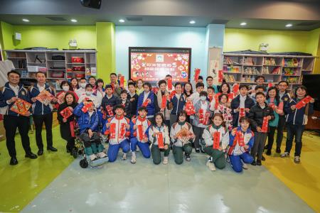 1月24日上午,一行人組成探訪隊前往氹仔明愛學校探望一眾師生,向學童們送上福包禮品,並致以節日問候和祝福。期間探訪隊成員與師生親切交談,增進對康復教育的認識,促進相互理解;本局人員向師生傳授簡單防罪知識,教導他們識別詐騙陷阱的技巧,提高自我保護意識,免受犯罪侵害。其後探訪隊成員與學童們合力製作特色揮春及賀年勞作,共同歡唱賀年歌曲,現場洋溢一片溫馨喜慶的節日氣氛。