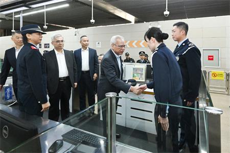 岑浩輝視察關閘出入境事務站及保安範疇設施期間,不時向工作人員致以新春祝福,並感謝他們盡職履責,全力以赴保障居民和旅客在安全環境下歡度佳節。他強調,新春期間迎來出入境人流高峰,有大量旅客來澳度歲,有賴保安範疇團隊一如既往,團結協作做好各項警務工作。