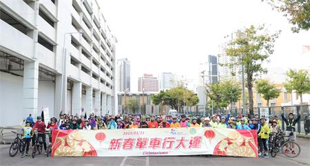由體育局與中國澳門單車總會共同主辦的 “新春單車行大運” 於上午舉行,車隊在上午9時於奧林匹克體育中心三人籃球場側空地出發,途經氹仔區、金光大道、最後於終點站氹仔海濱休憩區結束,全程約20公里。活動吸引約300名市民參與,參加者除了單車愛好者,亦有不少父母帶同子女進行親子單車遊體驗,場面既溫馨又熱鬧。