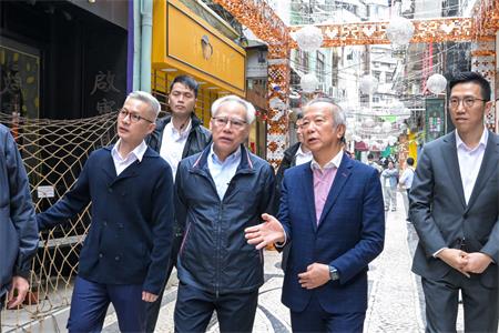 隨後,岑浩輝一行轉往氹仔,到農曆新年氹仔舊城區臨時行人專用區視察,他沿路不時向居民、旅客及商戶拜年,親切互動。