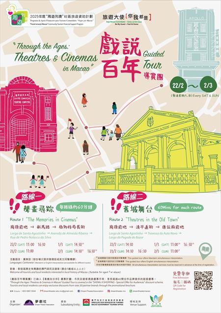 【本報訊】旅遊局持續透過資助計劃,鼓勵澳門社團舉辦多元旅遊活動或項目,帶動社區經濟。旅遊局於2月份資助社團舉辦的活動: “戲說百年導賞團” 及 “新春戲班x花車創意市集”,讓居民和旅客體驗澳門的多元“旅遊+”魅力。