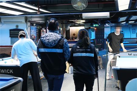 在控煙方面,衛生局、治安警察局、市政署、博彩監察協調局和海關等部門共發現3,941宗違法吸煙、138宗攜帶電子煙出入境,以及126宗涉嫌違反《控煙法》其他規定的個案,包括:沒有在法律規定的地點張貼禁煙標誌、銷售煙草製品的地點沒有張貼禁止售賣煙草製品予未滿18歲人士的告示等。發現違法吸煙個案最多的場所類別分別為食肆(共604宗,佔15.3%)、娛樂場(共531宗,佔13.5%)、公園花園及休憩區(共361宗,佔9.2%)等。當中,衛生局聯合博彩監察協調局就全澳娛樂場巡查了709次,共發現531宗違法吸煙個案。