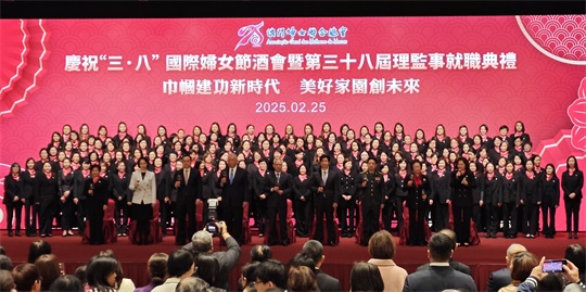 【本報訊】澳門婦女聯合總會今(25)日下午假漁人碼頭會展中心舉行“慶祝‘三·八’國際婦女節酒會暨第三十八屆理監事就職禮”,會長劉金玲,行政長官岑浩輝先後致辭,全國政協副主席何厚鏵、中央駐澳機構領導以及特區政府官員應邀出席。