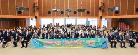 【本報訊】衛生局、教育及青年發展局攜手聯動全澳10所高等院校,共同開展高等院校“健康校園”計劃,致力為超過66,000名教職員和學生建立健康、關愛、積極的工作和學習環境。該計劃於2月26日舉行啟動禮,衛生局羅奕龍局長、教育及青年發展局龔志明局長,以及逾200名來自澳門大學、澳門理工大學、澳門旅遊大學、澳門保安部隊高等學校、澳門科技大學、澳門城市大學、聖若瑟大學、澳門鏡湖護理學院、澳門管理學院、中西創新學院10所參與該計劃的高等院校領導、教職員和學生出席了啟動禮。