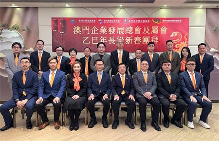 【本報訊】澳門企業發展總會攜手三屬會-澳門連鎖加盟商會、澳門老字號發展協會及澳門知識產權保護商會於今(27日)假澳門富貴門海鮮酒家舉辦長級新春團拜活動。總會主席馬志毅、理事長黃仁民、監事長曾增偉,澳門連鎖加盟商會理事長吳雪綺,澳門老字號發展協會理事長李子禹,澳門知識產權保護商會會長蕭頌銘、理事長林永然以及三屬會長級代表等近30人齊聚一堂,共賀新春。