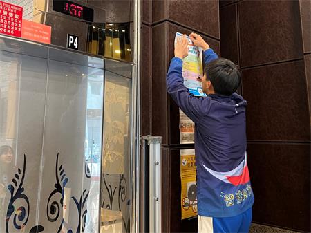 “普法動力”青年義工到本澳各區住宅大廈將貼宣傳海報
