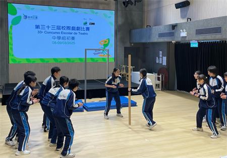 由教育及青年發展局主辦、戲劇農莊協辦的“第三十三屆校際戲劇比賽”共收到13所小學(16隊)及19所中學(29隊)報名參加。因中學組參賽隊伍較多,故特設初賽選出入圍決賽的隊伍,以提升參賽隊伍的演出水平。初賽已於2025年3月8日及9日(星期六、日)於駿菁活動中心舉行。是次初賽的評選邀請到港澳戲劇界資深人士擔任,分別為香港中英劇團助理藝術總監盧智燊先生、文化局演藝學院戲劇學校代表導師陳斐力先生及戲劇農莊行政總監李俊傑先生,評判們均表示今屆演出題材趨多樣化,整體演出水平不俗。