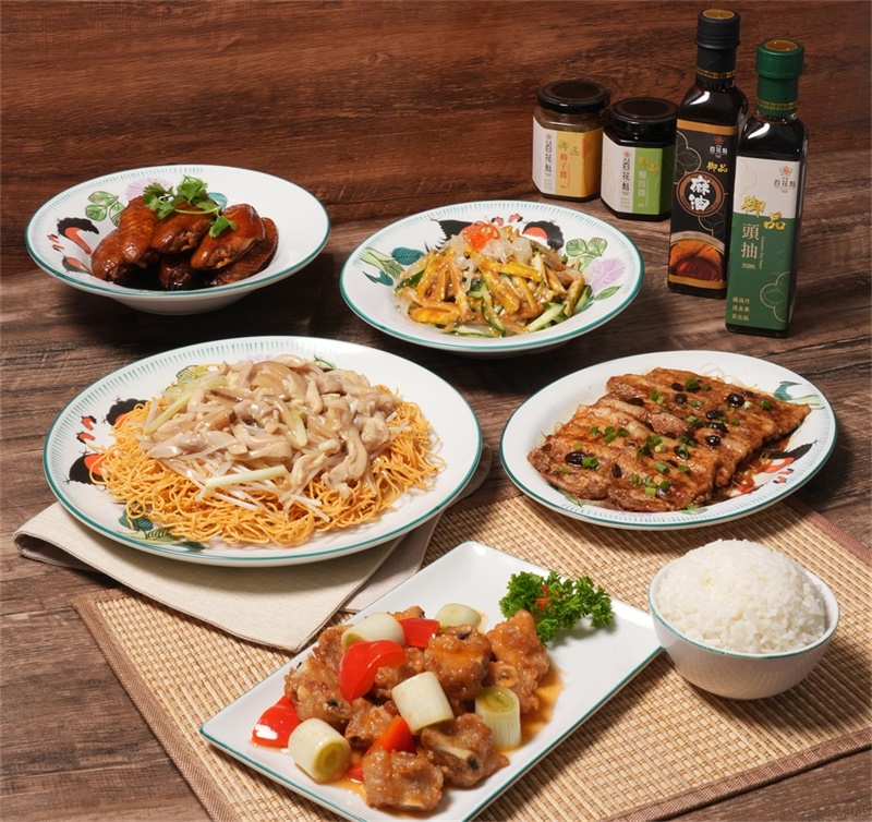 •梅子醬焗排骨。嚴選豬肋排先煎後焗,鎖住肉汁,加入“同益百花魁”酸梅醬、蒜蓉與薑蓉慢火燜煮,使排骨吸收梅子醬的酸甜醬香,肉質軟嫩適中,風味醇厚;