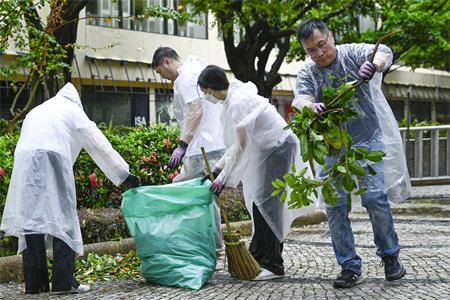 今早九時半,來自不同部門的支援隊分別抵達全澳各區的街頭巷尾、公園和休憩區開展清理工作,隊員們分工合作,清掃垃圾、移走遺留在街道的樹枝和各類生活垃圾。針對個別社區和公園的垃圾較多,有部門即時增派人手,務求儘快完成清理工作,恢復整潔的社區環境。