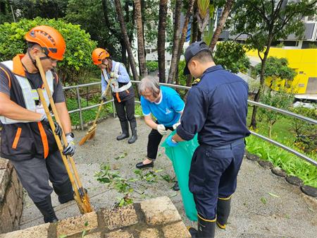 澳門中華總商會派出義工聯同民防志願者參與清障行動