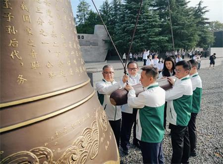團員代表在侵華日軍南京大屠殺遇難同胞紀念館共同撞響和平大鐘,