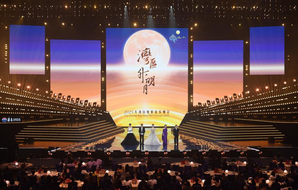 【中新社澳門929日電 (記者 莫倩 鄭嘉偉 陳子彥)】灣區升明月”2025大灣區電影音樂晚會28日晚在澳門銀河綜藝館舉行。晚會匯聚逾80位來自海峽兩岸暨港澳的電影人、音樂人,老中青三代共聚濠江,唱響金曲。