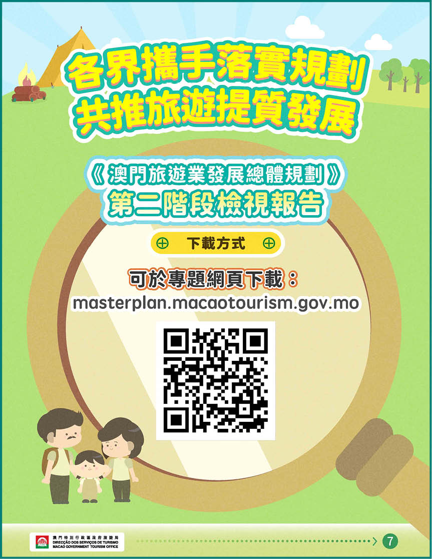 另外,第二階段檢視報告亦包含2030年關鍵指標預測及趨勢,供公眾參考。有興趣的公眾可於以下專題網頁下載《澳門旅遊業發展總體規劃》第二階段檢視報告(中文、葡文及英文版本):masterplan.macaotourism.gov.mo。