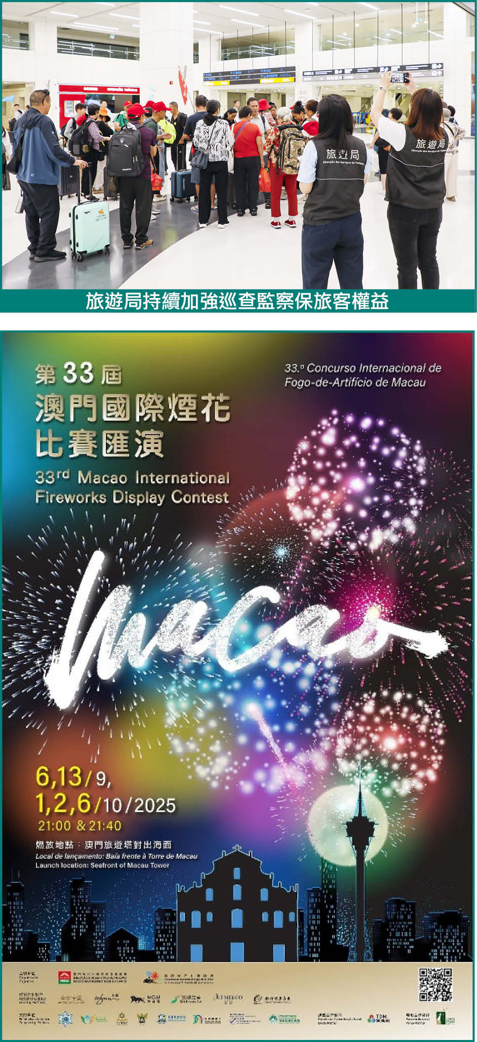 【本報訊】為迎接國慶節內地8天長假期,旅遊局已積極部署,透過多渠道宣傳、與業界協調、跨部門巡查,以及與內地旅遊主管部門緊密聯繫,全面保障旅遊服務質素。國慶“黃金周”假期將安排煙花表演及多元社區活動,展現澳門“旅遊+”活力,把握重要節假日促進旅遊經濟。