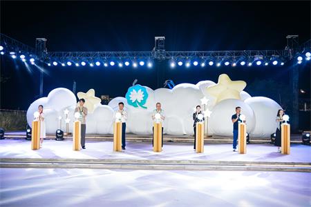 隨後,由行政事務局局長曹晉鋒,澳資企業代表、真健康(廣東橫琴)醫療科技有限公司創始人張昊任,澳門新街坊居民代表黃滋才,橫琴居民代表、向陽村網格黨支部書記梁文貴,澳門創業青年代表、灣谷科技研究(珠海市)有限責任公司創始人黃茵,澳門跨境執業醫生、橫琴聯合生命醫療主管繆永銳,以及本次活動表演人員代表、琴澳青少年合唱團成員郭芸熙擔任開幕嘉賓,按下台上啟動按鈕,星條啟動柱發出耀眼的光芒,現場由琴澳設計師共同設計打造的、代表琴澳區域與文化的夢幻氣模被同時點亮。隨著熱烈的掌聲與歡呼聲,“2025年琴澳家宴”活動正式開幕!