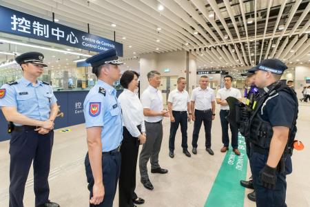 視察期間,梁文昌局長對各口岸及市面的警務部署與執行情況表示肯定,同時還特別慰問了在節日期間執勤的前線警員,感謝他們堅守崗位與辛勤付出,保障了出入境口岸的通關順暢和市面秩序的穩定,並勉勵大家繼續以高度的責任感和使命感,為市民及旅客營造一個安全、便捷、和諧的節日環境。
