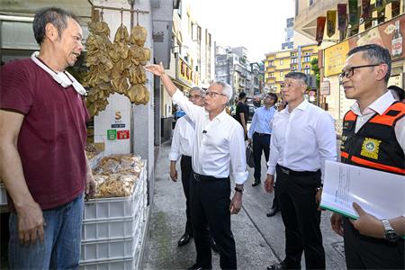 超強颱風“樺加沙”逼近時,行政長官岑浩輝到十月初五街視察,