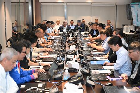 聽取民防架構成員應對超強颱風“樺加沙”的工作匯報,並作出指示。