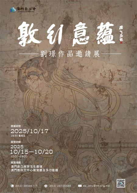 【本報訊】由澳門基金會主辦的“敦行意蘊——劉璟作品邀請展”將於2025年10月15日至20日在澳門教科文中心展覽廳及多功能廳舉行,展出劉璟的精選國畫作品46件。展覽開幕儀式將於2025年10月17日(星期五)18:30在澳門教科文中心展覽廳舉行。