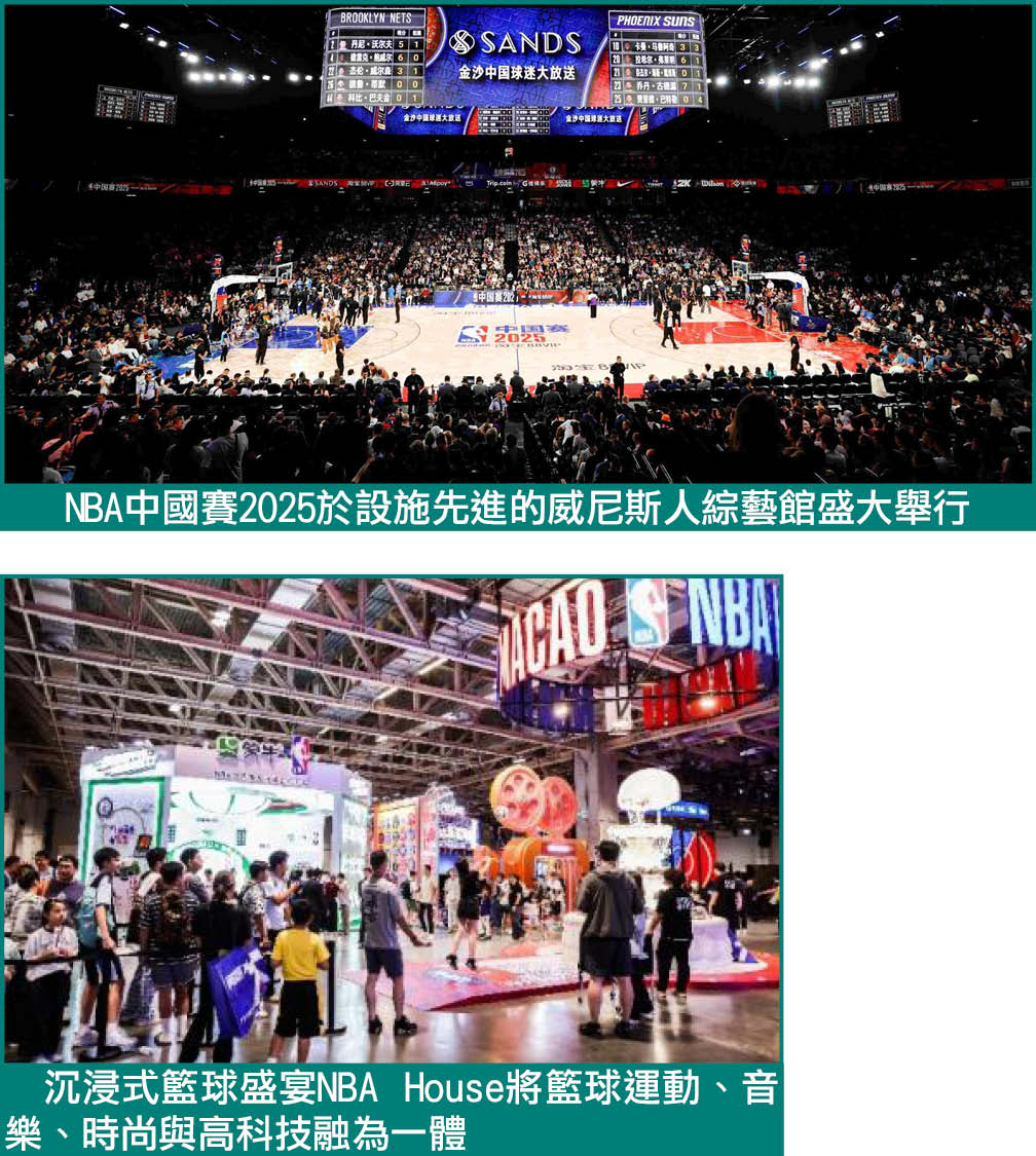 【本報訊】金沙中國有限公司近日圓滿舉辦了為期一週的NBA籃球盛事,將頂尖體育競技、世界級表演及意義深遠的社區關懷活動完美結合。一系列豐富多彩的活動展現了籃球運動跨越國界與文化的超凡魅力,吸引來自全球及本地的熱情球迷齊聚澳門,沉浸於無與倫比的NBA籃球體驗。