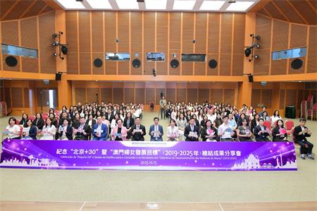【本報訊】婦女及兒童事務委員會於10月15日下午在澳門科學館會議廳舉行紀念“北京+30”暨“澳門婦女發展目標(2019-2025年)”總結成果分享會,向相關政府部門、民間機構和社會人士分享澳門特區政府首個婦女政策於各領域取得的豐碩成果,並就第二個“澳門婦女發展目標”(2026-2032年)的框架進行引介。包括公共部門代表、婦女及兒童事務委員會委員、民間社團和社會服務機構人員等約120人出席。