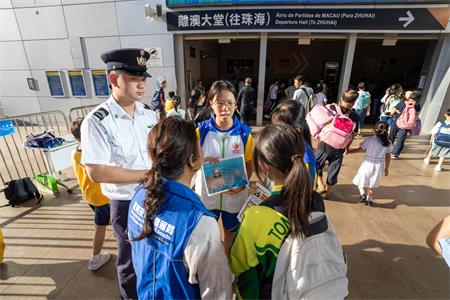 教青局及澳門海關人員聯同“守正之星”學員在關閘口岸宣傳守法意識