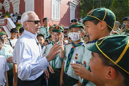 行政長官岑浩輝與參觀人士互相問好,歡迎大家到政府總部。