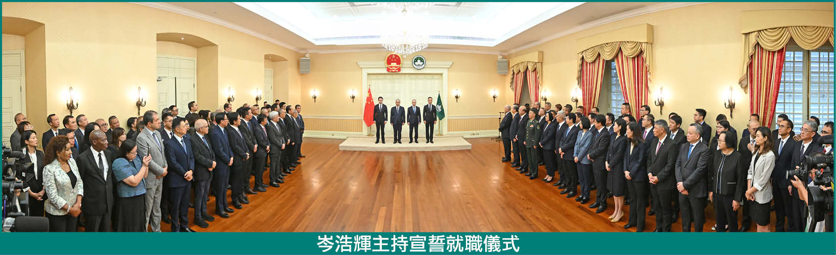 【本報訊】行政長官岑浩輝1016日上午在政府總部主持行政法務司司長黃少澤、保安司司長陳子勁、檢察院檢察長唐曉峰的宣誓就職儀式。