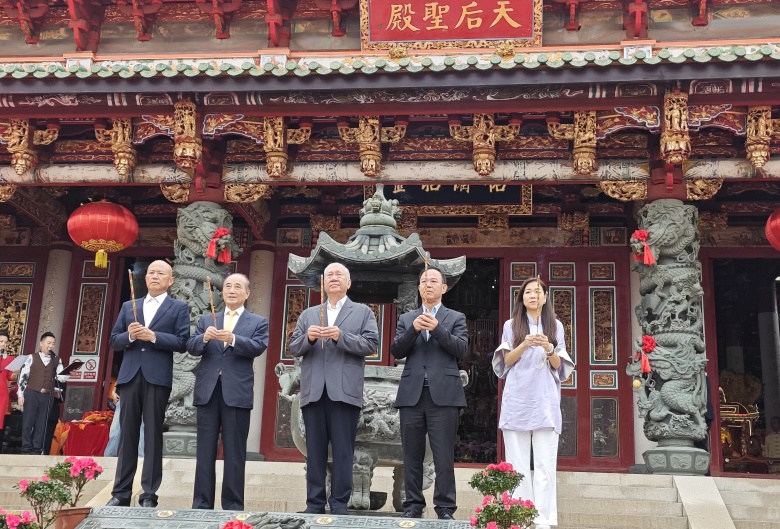【本報訊】澳門中華媽祖基金會主辦,湄洲媽祖祖廟董事會協辦,澳門基金會資助,以“千秋媽祖普世共仰”為主題的“第十八屆澳門國際媽祖文化旅遊節”今(27)日圓滿舉行,包括媽祖祭典儀式、金身繞境巡遊及文藝表演等活動,來自海峽兩岸及海外的媽祖信眾、文化表演團體及逾千名嘉賓齊聚澳門。主辦單位希望透過活動,以媽祖文化為紐帶,聯結海內外炎黃子孫,增強中華民族凝聚力,讓中華文化在世界舞台上綻放光彩。
