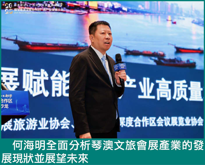 澳門酒店旅業商會副會長黃麗薇精准剖析琴澳“廣告+文旅+酒店”深度融合的機遇與挑戰,為打造琴澳廣告文旅產業新高地提供模式創新建議。澳門會展旅遊業協會會長兼橫琴會展協會會長何海明全面分析琴澳文旅會展產業的發展現狀並展望未來,通過案例分享與政策解讀,深挖兩地廣告產業與會展商貿產業融合發展的巨大潛力。