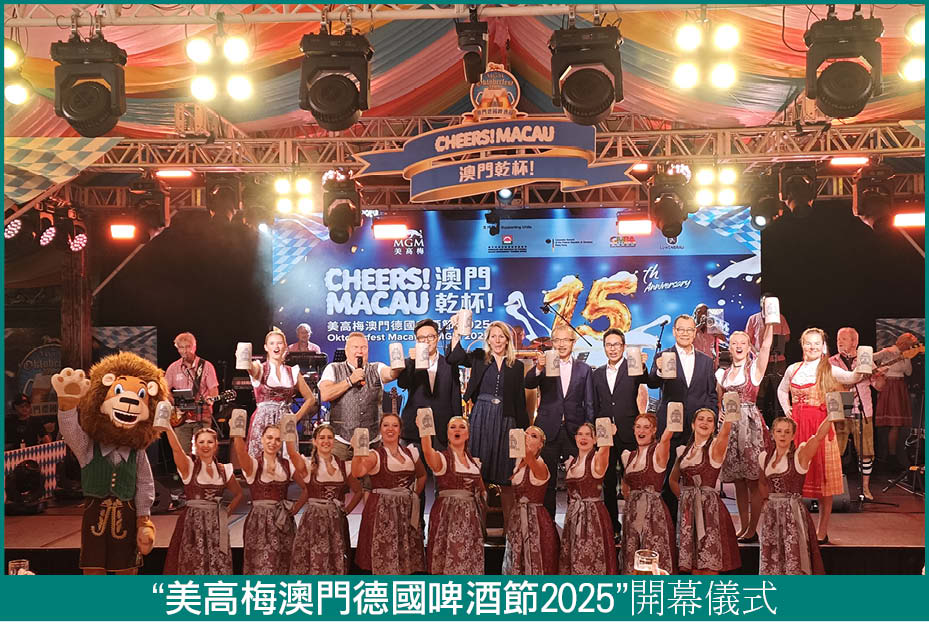【本報訊】美高梅年度品牌派對盛事“美高梅澳門德國啤酒節2025”10月24日於美獅美高梅盛大開幕,即日起至11月2日,為澳門帶來正宗日耳曼風情的啤酒派對盛典,歡迎市民和旅客齊聚美獅美高梅舉杯暢歡,品嚐琳琅滿目的德國傳統美酒佳餚,盡情感受“創意城市美食之都”的非凡魅力!