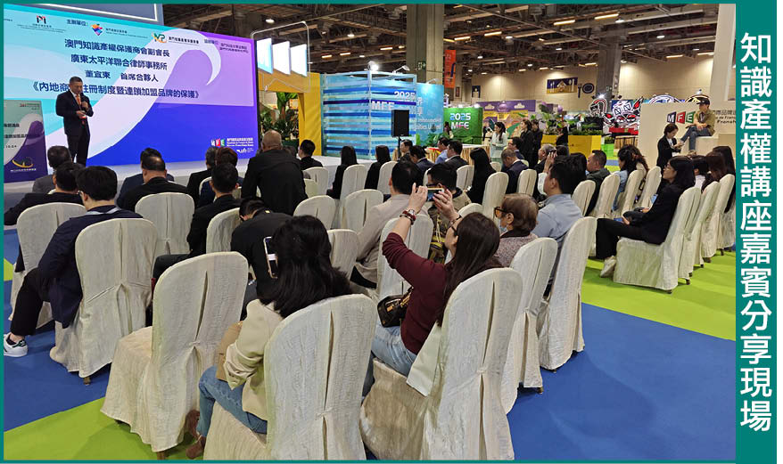 【本報訊】澳門連鎖加盟商會和澳門知識產權保護商會聯合主辦的“内地商標註冊制度暨連鎖加盟品牌的保護”知識產權專題講座10月24日下午假澳門國際品牌連鎖加盟展2025(簡稱“2025MFE”)展館賦能區舉行。